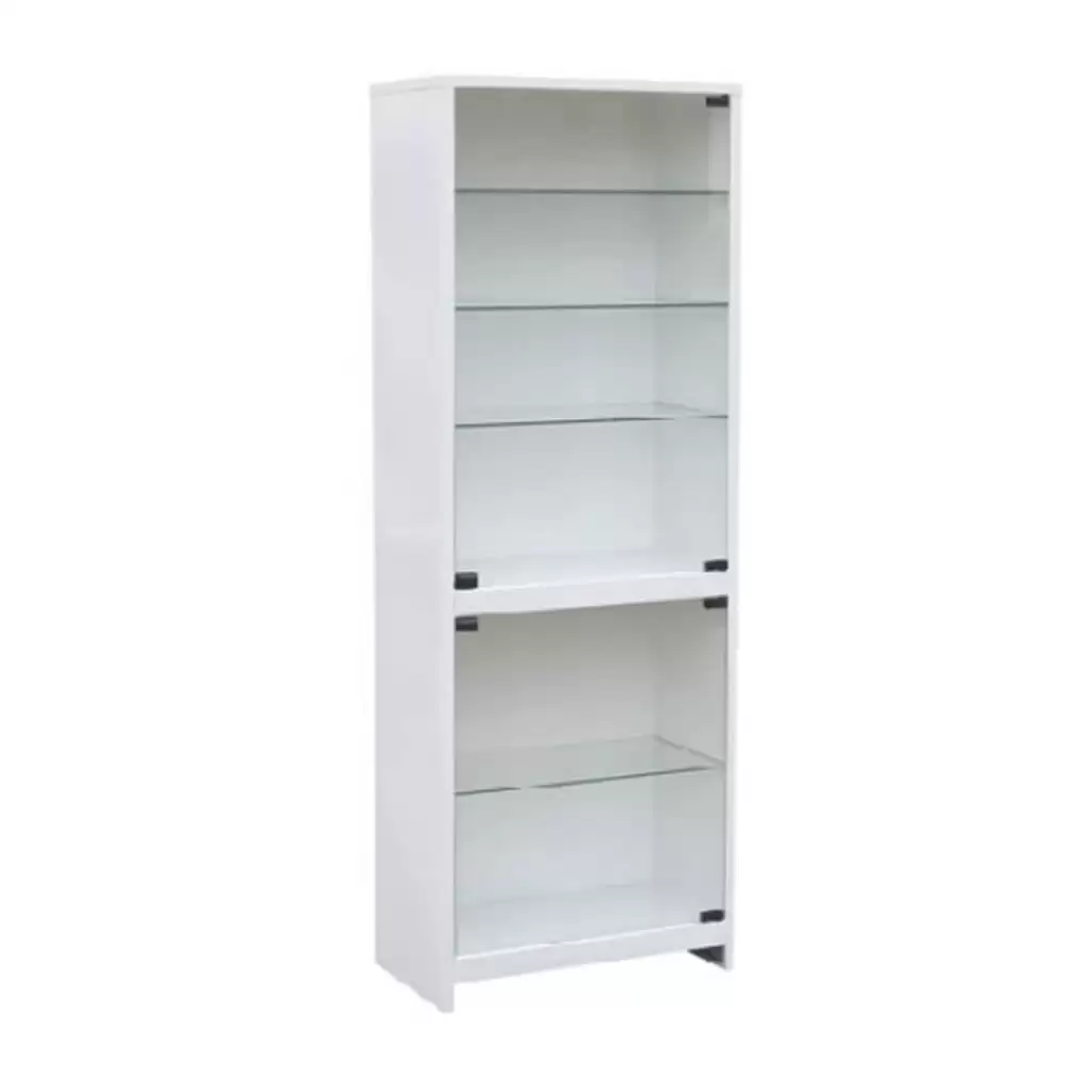 • низ: дверь-стекло, без замка, 1 полка-стекло;