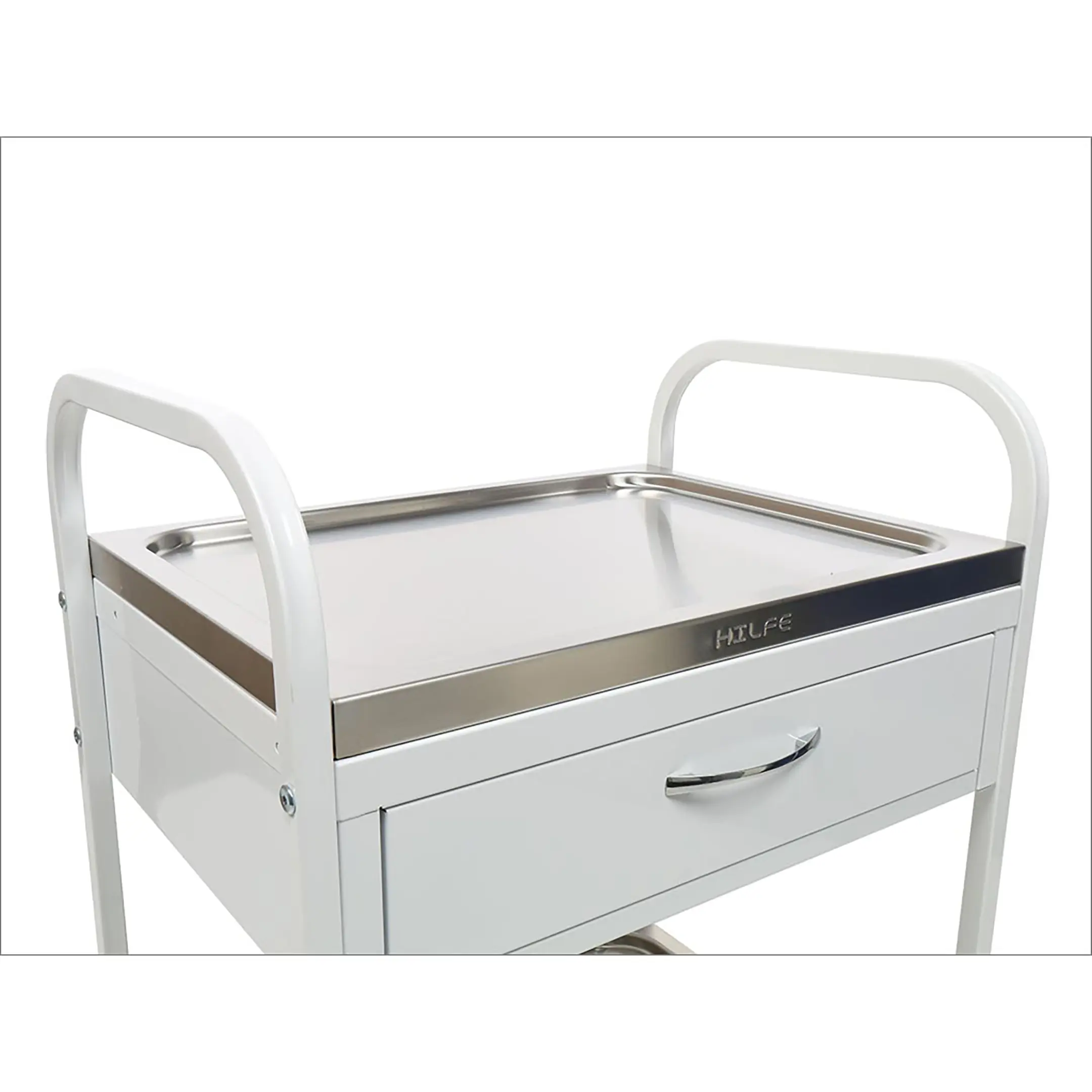 Основное отличие от стола манипуляционного МД SM 1 - вытяжная полка из нержавейки с логотипом HILFE.