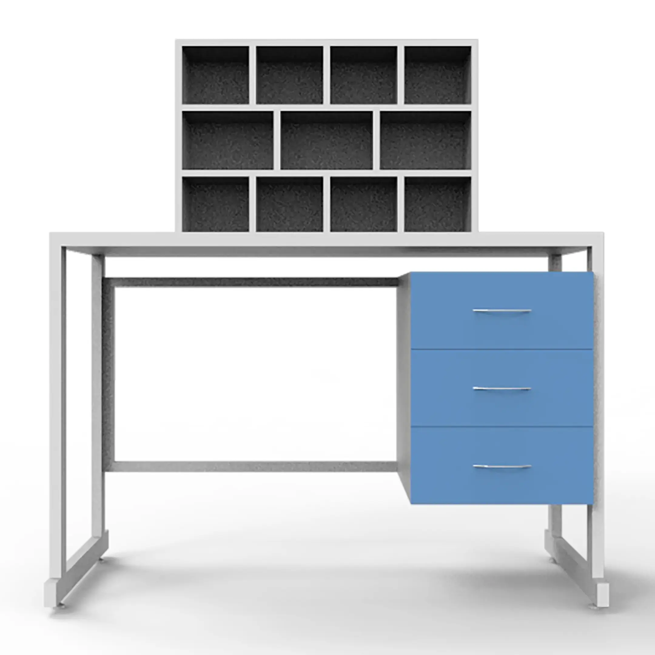 - Удобное хранение — боковая тумба с 3 выдвижными ящиками для хранения необходимых материалов и инструментов.