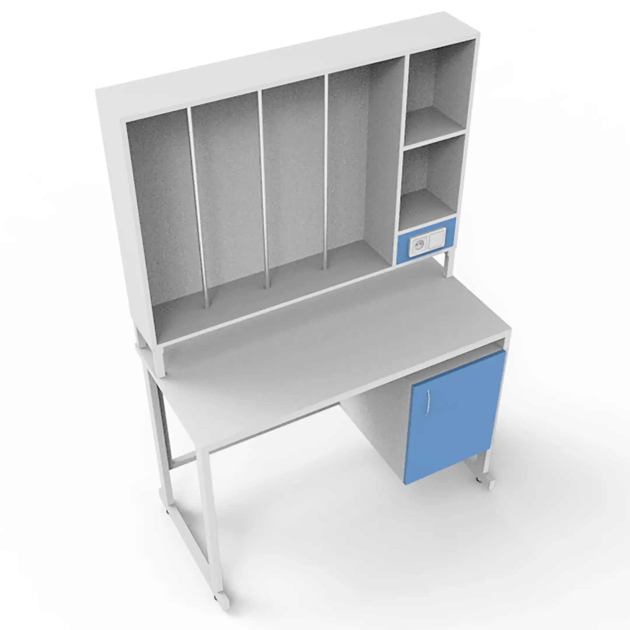 - Удобное хранение — тумба с дверцей для хранения необходимых предметов и образцов.