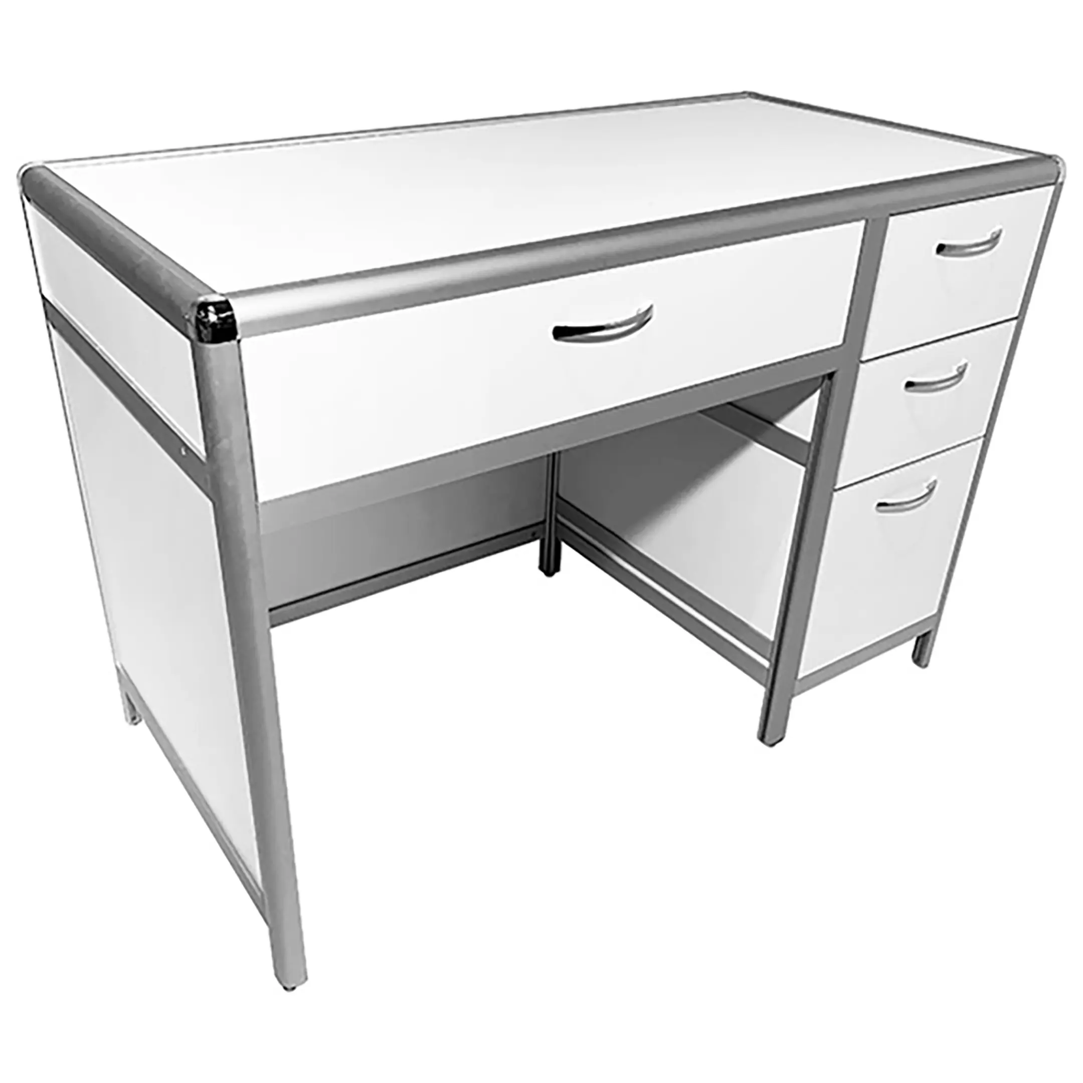 Стол лабораторный MED 10.006al (белый) — это идеальное решение для организации рабочего пространства сотрудников в лабораториях и медицинских учреждениях. Модель оснащена выдвижным ящиком под столешницей и тремя выдвижными ящиками в боковой тумбе. Каркас выполнен из алюминиевого профиля, столешница из ЛДСП толщиной 16 мм.