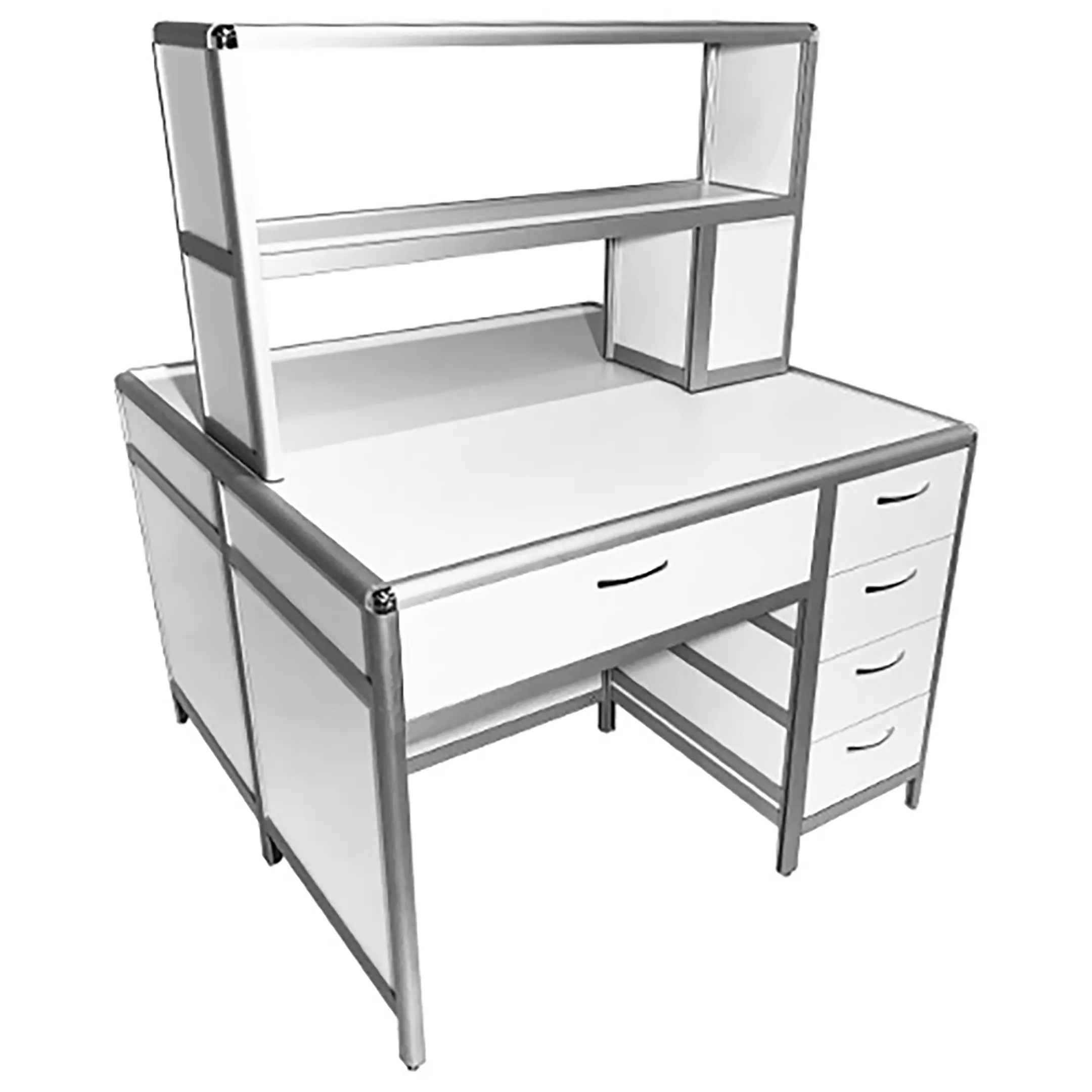 Купить стол лабораторный островной MED 11.002al с надстройкой (белый) в Курске