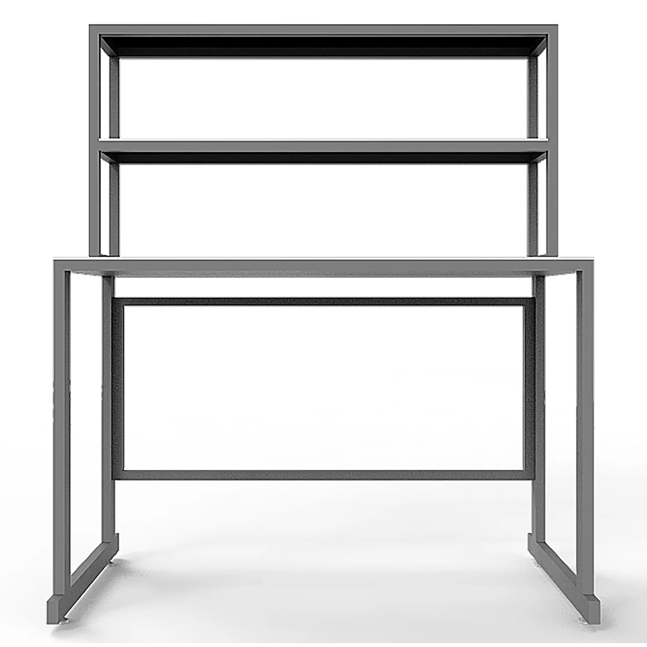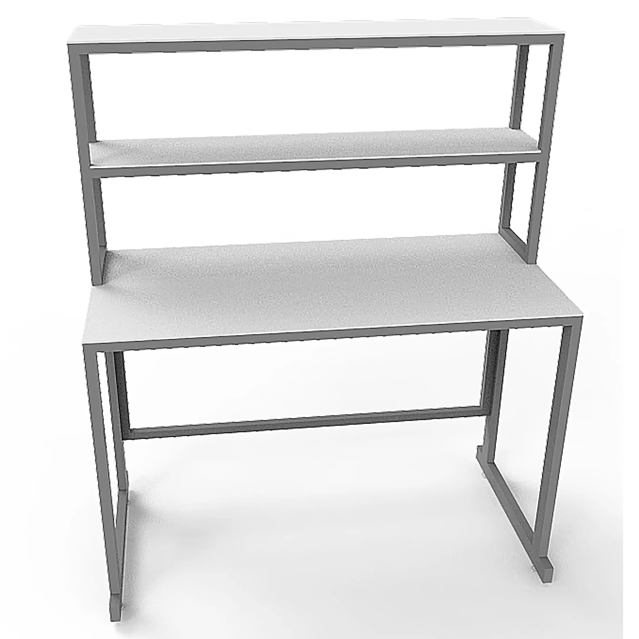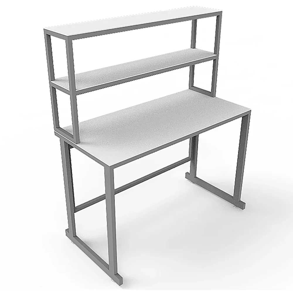 - Функциональная надстройка — две полки для дополнительного размещения оборудования, общая высота стола с надстройкой 1250 мм.