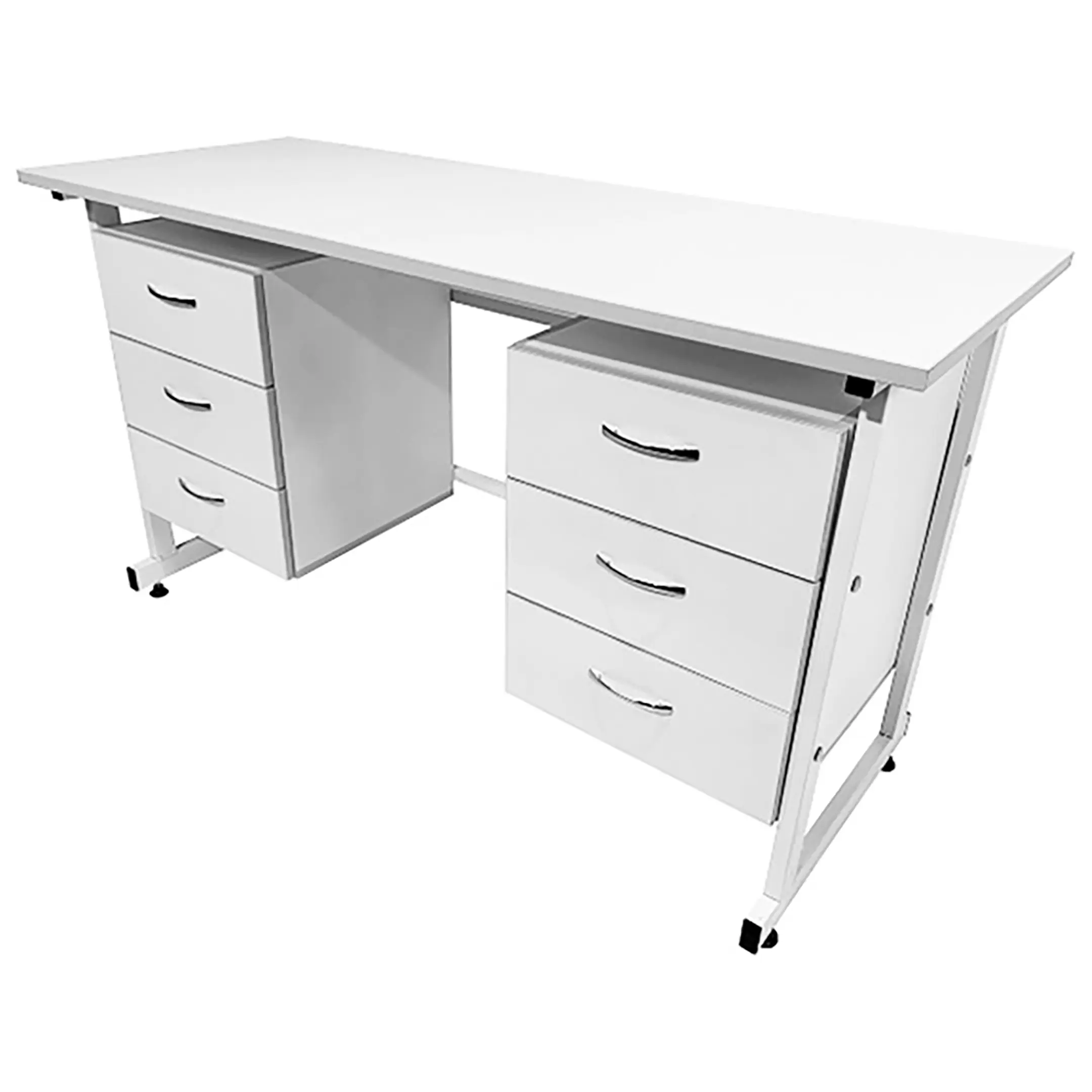 Стол лабораторный СЛ 12.006 (белый) — это отличное решение для организации комфортного и функционального рабочего места сотрудников в лабораториях. Модель оснащена подвесными тумбами с тремя выдвижными ящиками. Каркас выполнен из стального профиля, столешница из ЛДСП толщиной 22 мм.