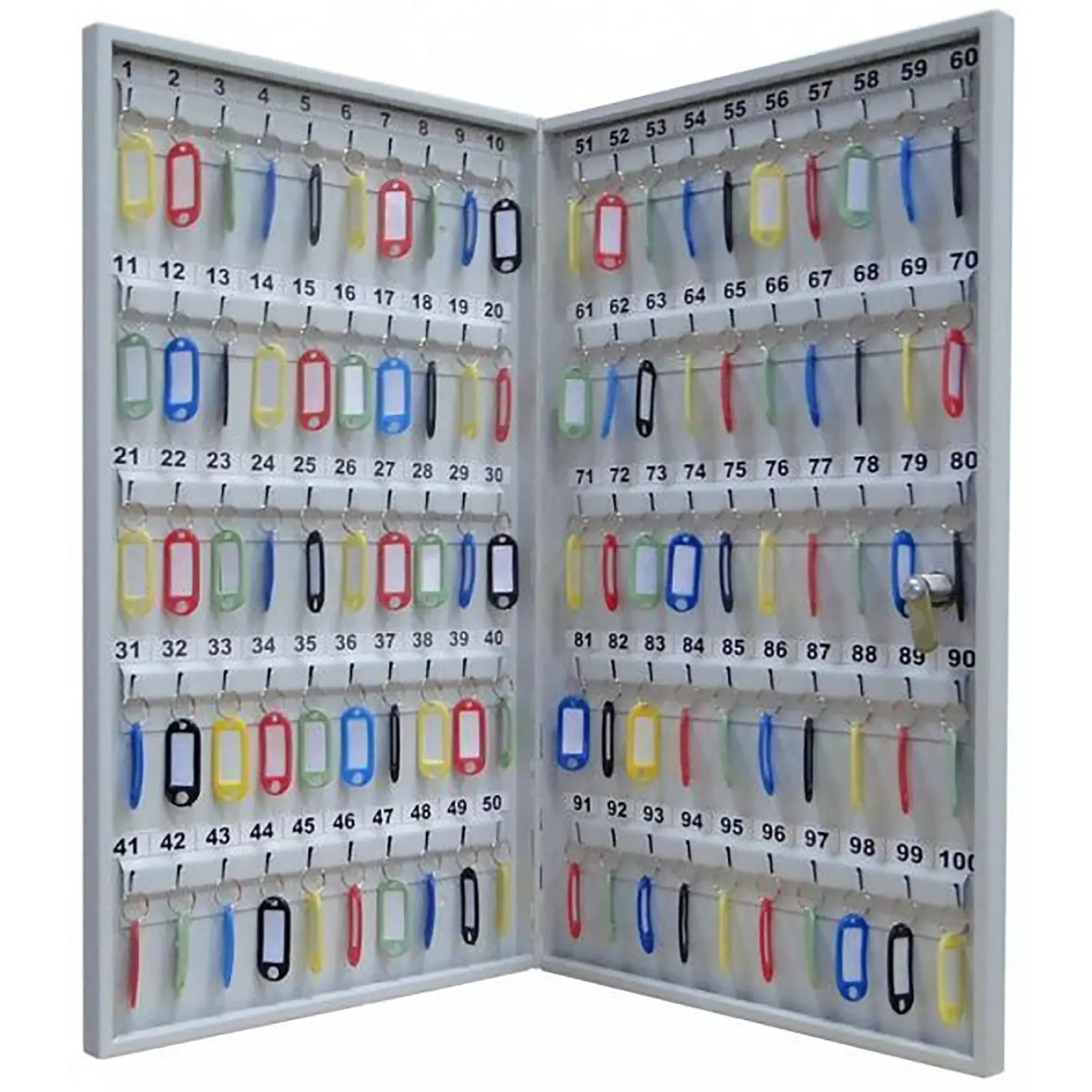 - Четкий контроль и простой учет — система с пронумерованными брелками и соответствующими ячейками позволяет легко идентифицировать каждый ключ, вести его учет в журнале и контролировать, кто и когда его получил или вернул. Это исключает путаницу и обеспечивает ответственность персонала.
