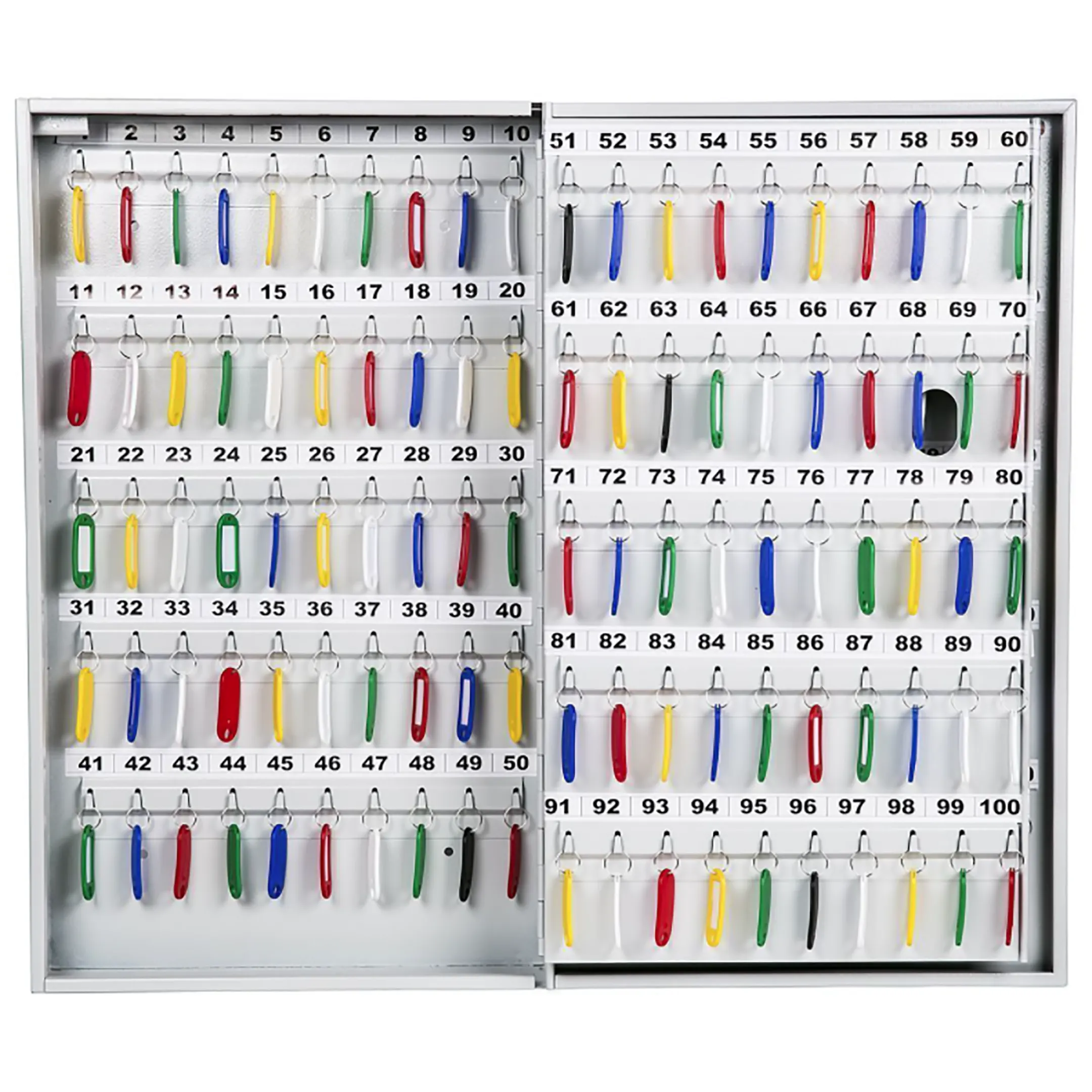 - Удобство для ежедневной работы и эргономика — внутренняя панель с рядами пронумерованных крючков обеспечивает отличный обзор. Комплектные брелки упрощают процесс снятия и возврата. Настенный или напольный монтаж позволяет выбрать наиболее удобное и контролируемое место для размещения.