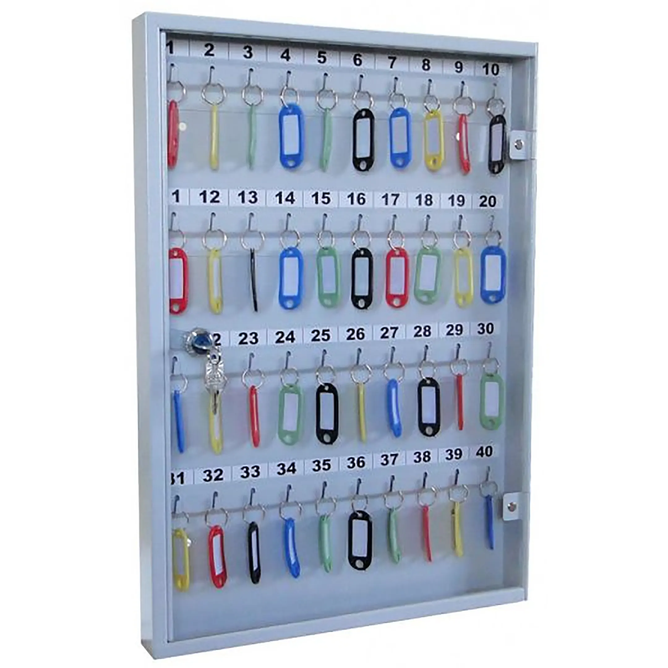 - Наглядность и мгновенный визуальный контроль — прозрачная дверца позволяет с первого взгляда оценить наличие и расположение всех ключей без необходимости открывания. Это обеспечивает оперативную проверку, быстрый поиск нужного ключа и предотвращает ошибки, связанные с его отсутствием.