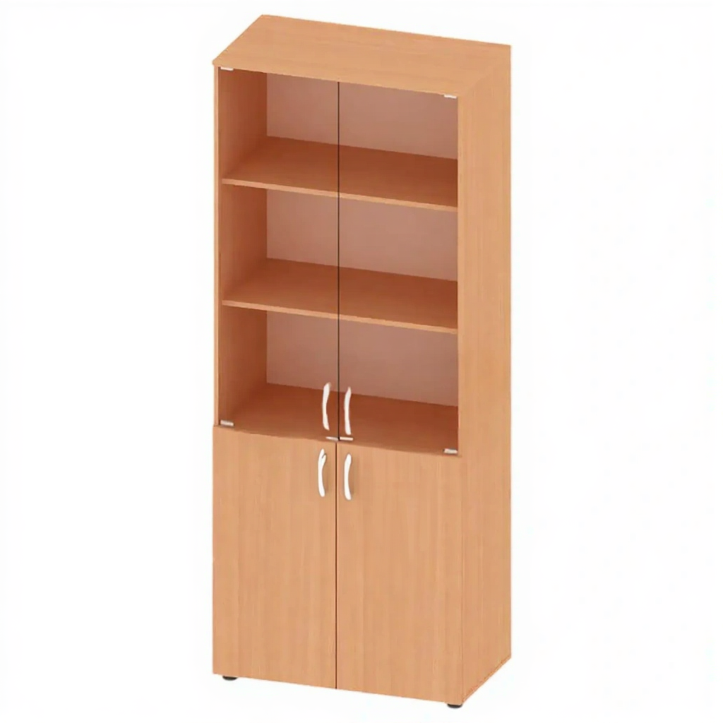 Шкаф для документов канцелярский, стекло, 800 мм ШК-ДУ-40 — это эстетичное и функциональное решение для хранения документов, книг и канцелярских принадлежностей в образовательных, офисных и административных учреждениях. Модель оснащена верхним фасадом с двумя полками и двумя дверями с прозрачными стеклами, обеспечивающими визуальный доступ к содержимому. Изготовлена из качественной ЛДСП толщиной 16 мм.