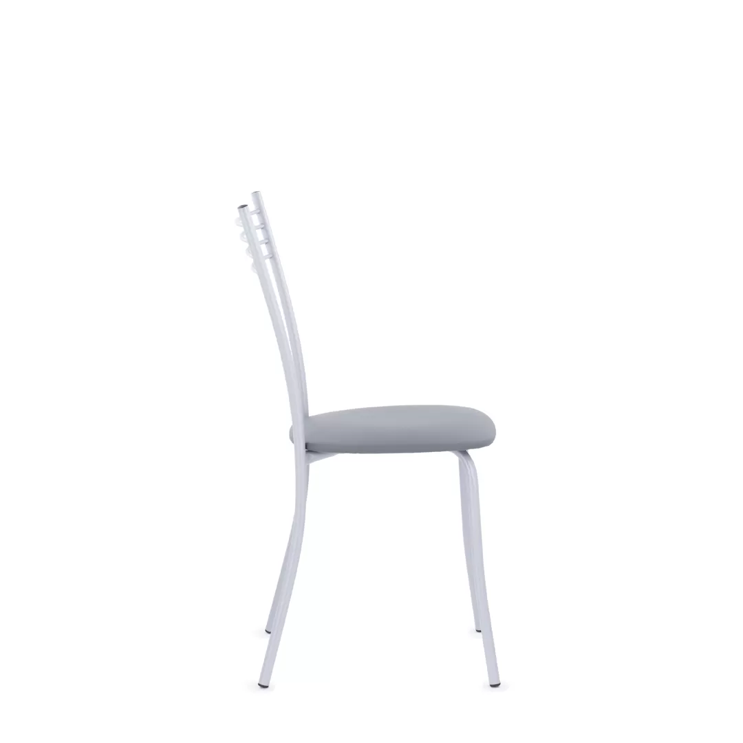 Эта лаконичная модель прекрасно подойдет для обеденной зоны. Стул, изготовленный из металла, эффектно смотрится в современном интерьере.  Удобная высокая спинка с горизонтальными прутьями и мягкое сиденье обеспечивают комфорт.