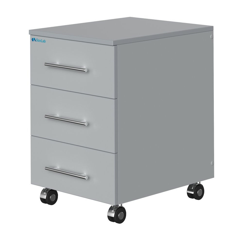 - Мобильность и удобство перемещения — колесные опоры позволяют легко перемещать тумбу по лаборатории без больших усилий.