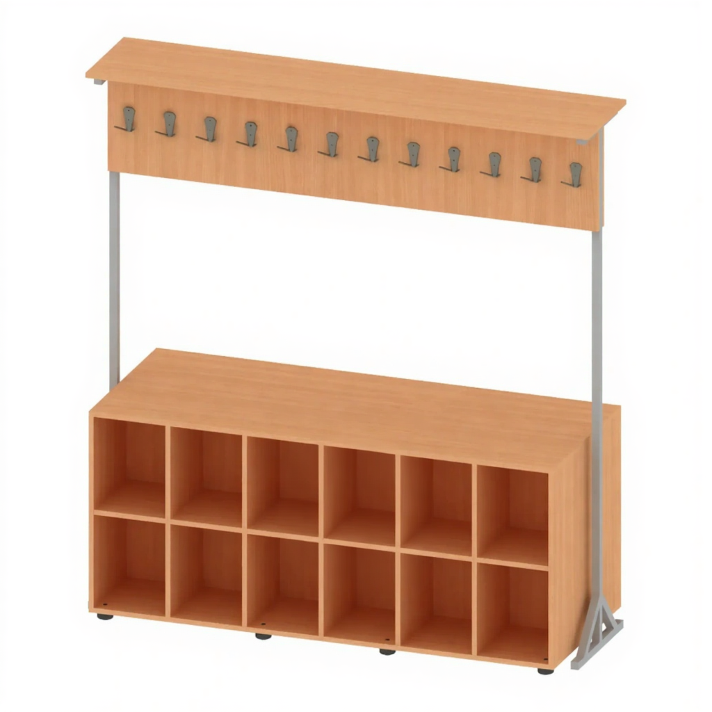 - Практичность — идеальное решение для организации пространства школьного гардероба.