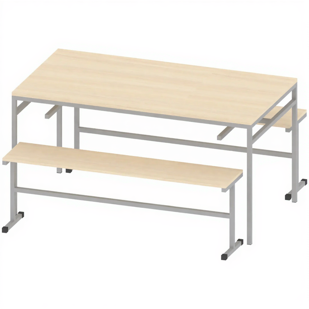 - Полный комплект для столовой — стол и две скамьи в одном наборе.