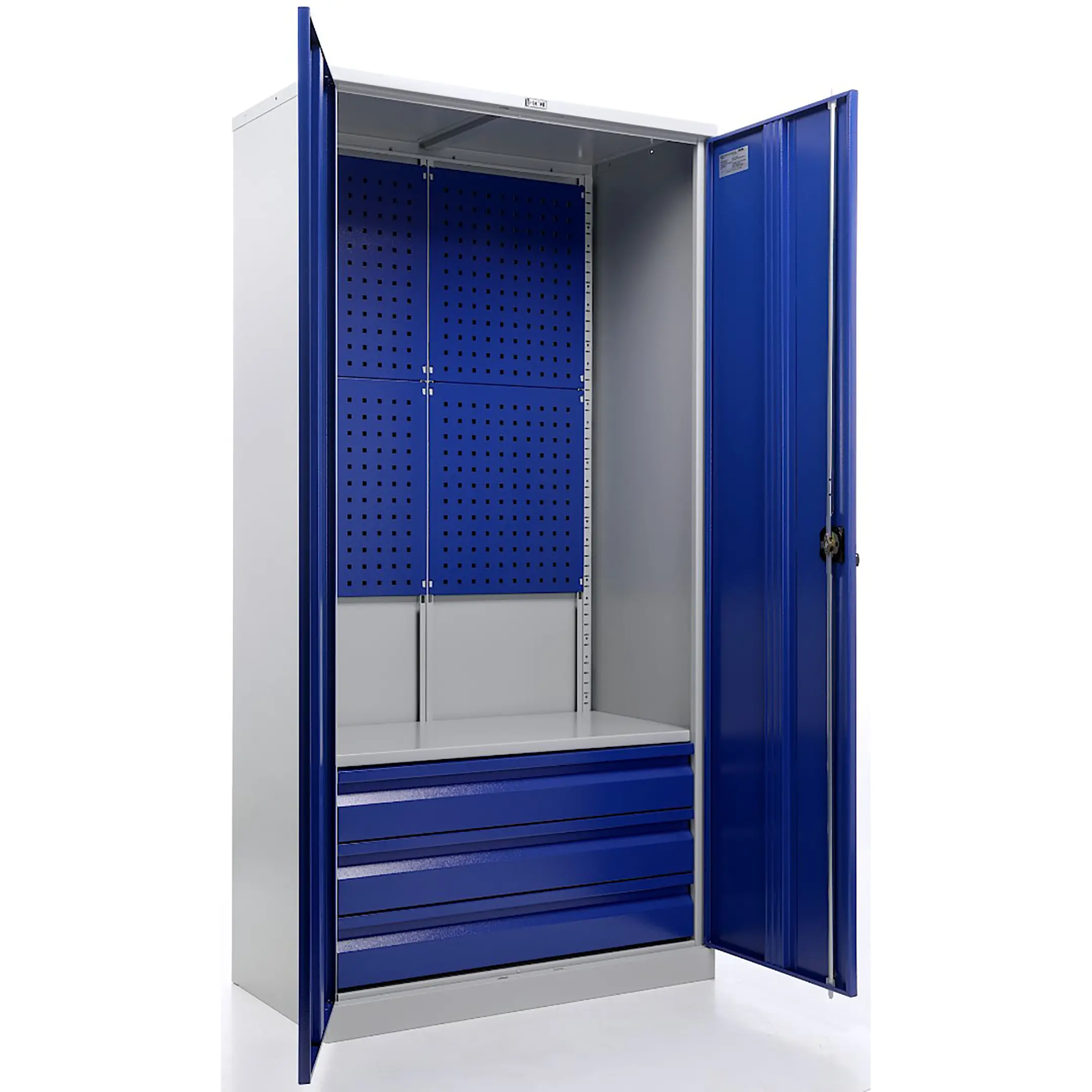 - Максимальная организация и наглядность — модель оборудована обширными перфорированными панелями (система «перфо») на дверцах и, как правило, на задней стенке. Это позволяет удобно, компактно и наглядно разместить огромное количество инструмента на крючках и держателях, обеспечивая мгновенный визуальный контроль его наличия и комплектности.