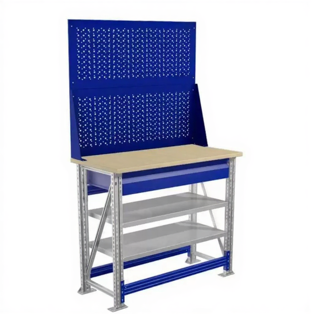 - Компактные размеры — столешница 1000х500 мм позволяет разместить верстак даже в небольших помещениях.