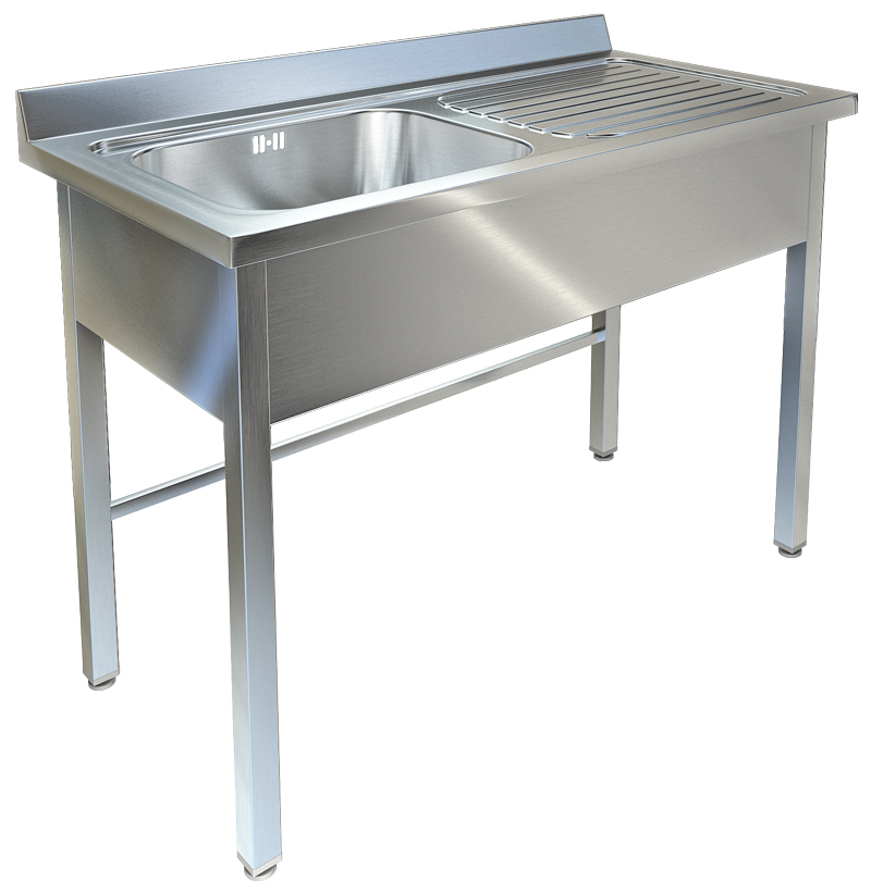 В комплекте с оборудованием поставляется сифон с переливом. Регуляторы высоты ножек позволяют устанавливать ванну моечную в помещениях с неровным полом. На дно мойки с внешней стороны наклеена шумопоглощающая прокладка. Для защиты соседних поверхностей и стен от воды производитель предусмотрел объемный задний борт и обнижение по периметру столешницы.