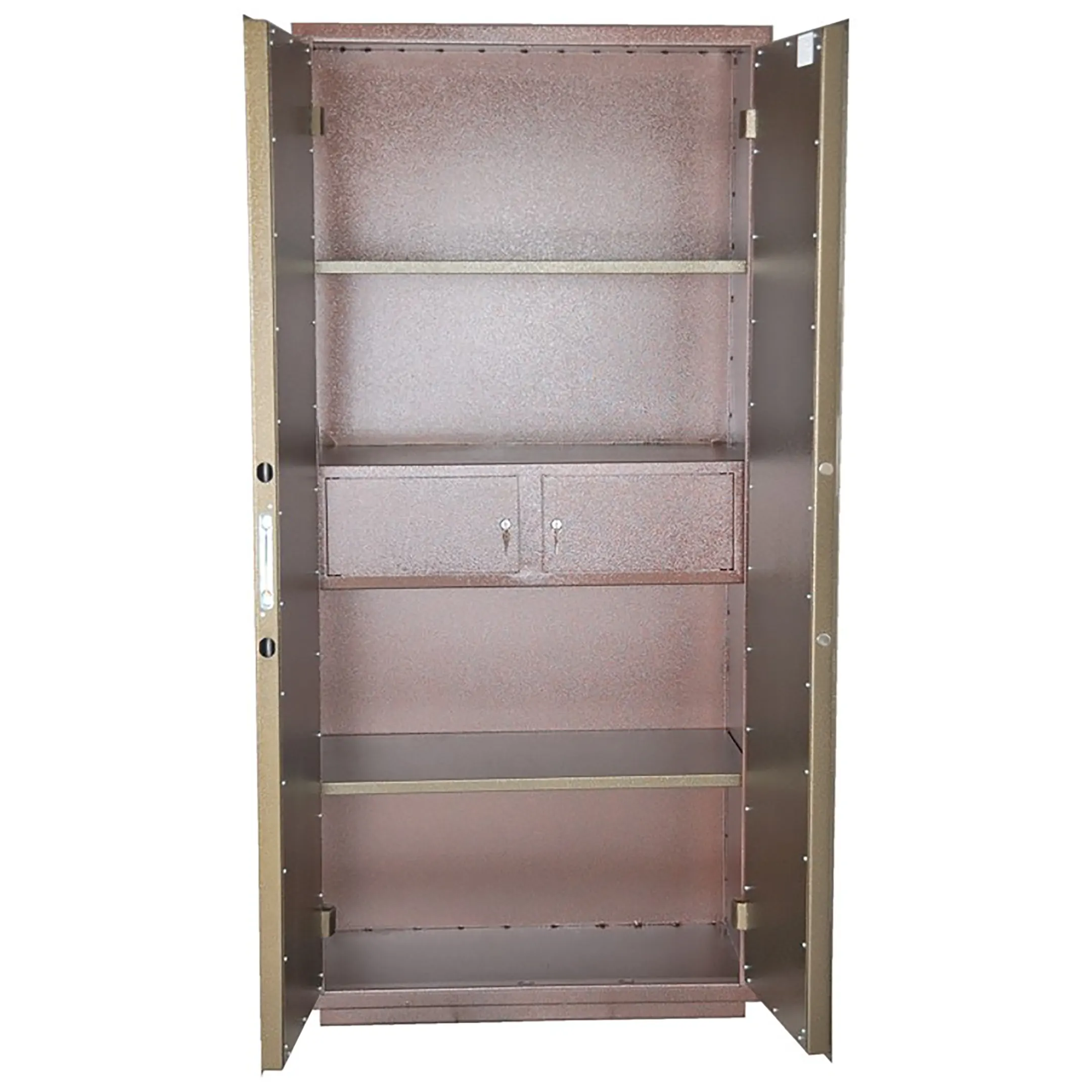 • Сейф односекционный, двухдверный, оснащен двумя съемными полками и двумя трейзерами.
