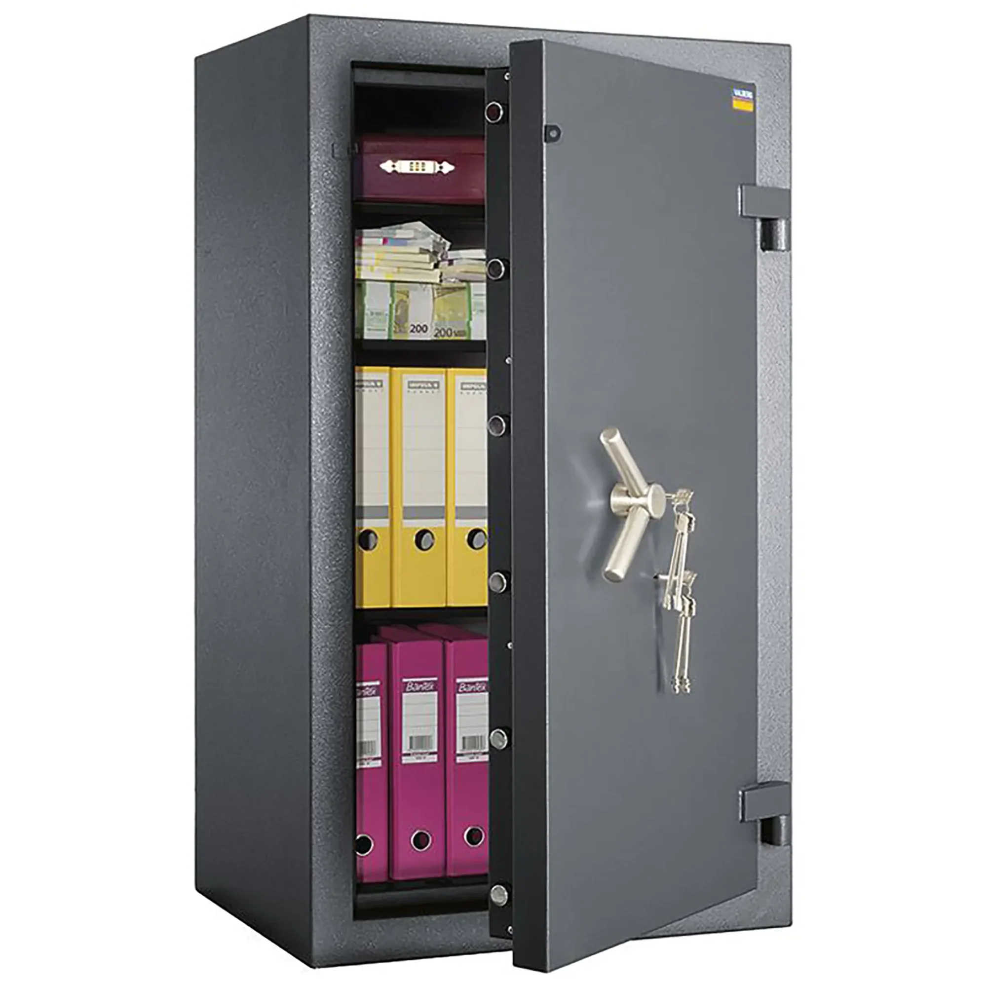 Сейф VALBERG ГРАНИТ III-1268 KL рекомендован для служебного пользования в административных и банковских помещениях, медицинских учреждениях — безопасного хранения важных документов, денег, наркотических средств и психотропных веществ.