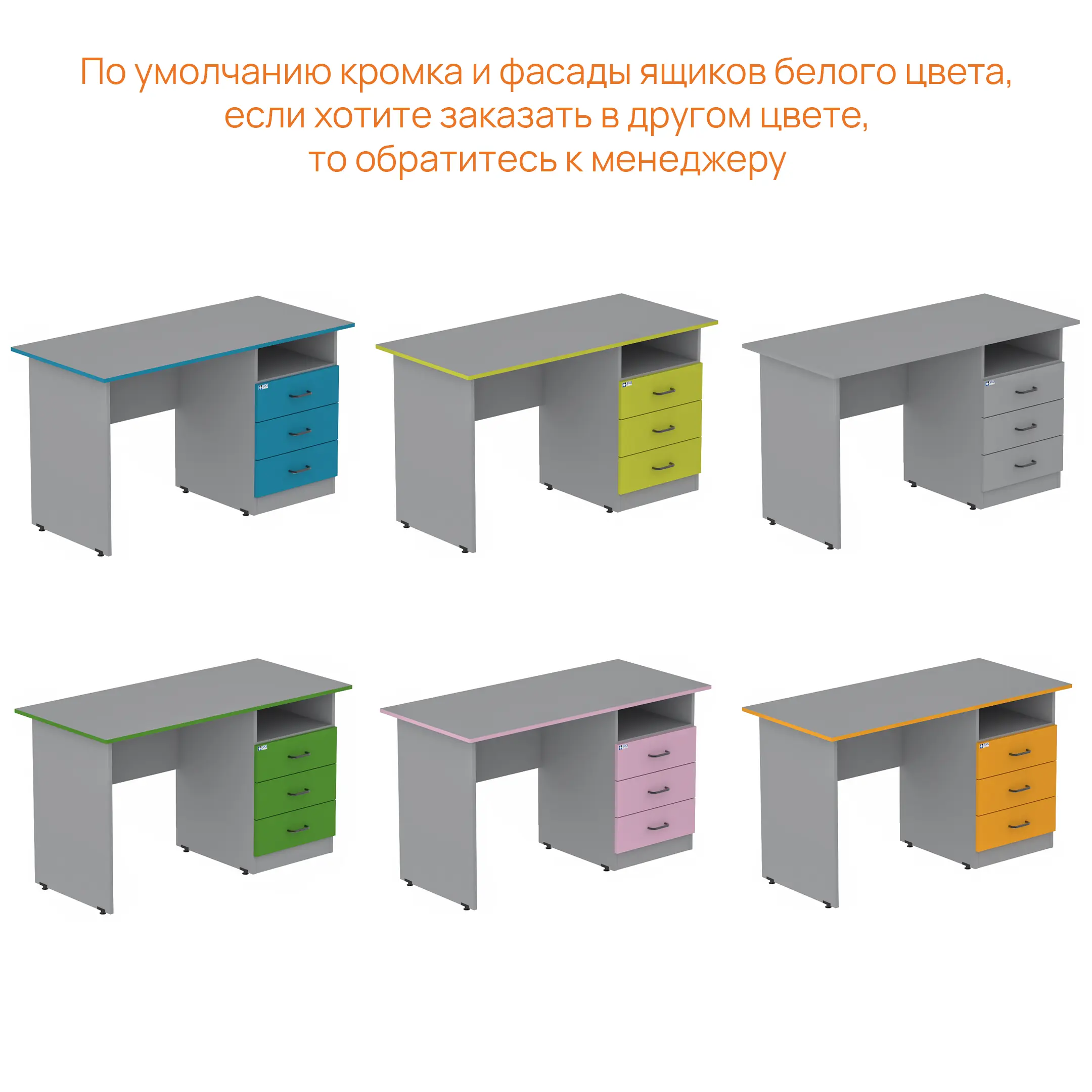 По умолчанию кромка и фасады ящиков в белом цвете, но возможно изготовление в других цветах, варианты представлены на последнем фото в карточке товара.