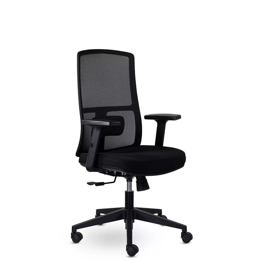 - Универсальный дизайн — чёрный пластиковый каркас придаёт креслу строгий и нейтральный внешний вид, подходящий для офисов любого стиля.