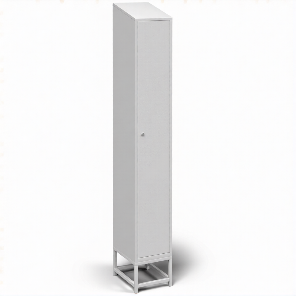 • Закрытый шкаф для хранения противогазов с дверью и подставкой окрашен порошковой краской, поверхность шагреневая.
