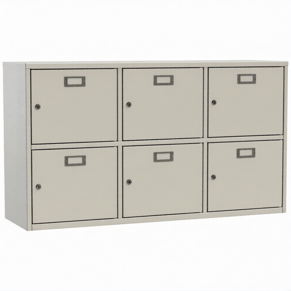 - 6 ячеек для касок. Каждая ячейка оснащена почтовым замком с двумя ключами в комплекте.