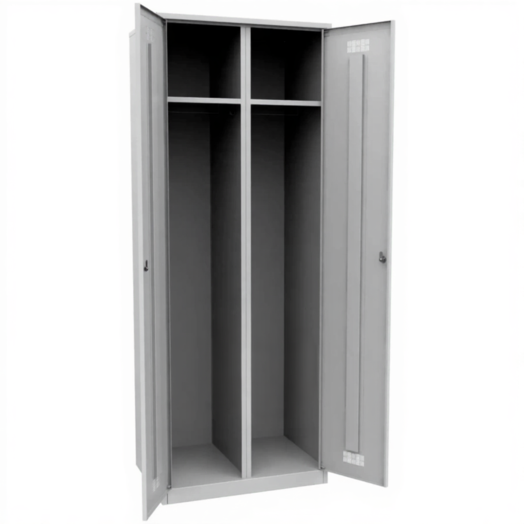 • Шкаф двухстворчатый предназначен для хранения одежды, обуви, сумок в помещениях закрытого типа. Изготовлен из холоднокатаной, листовой стали 0,8 мм.