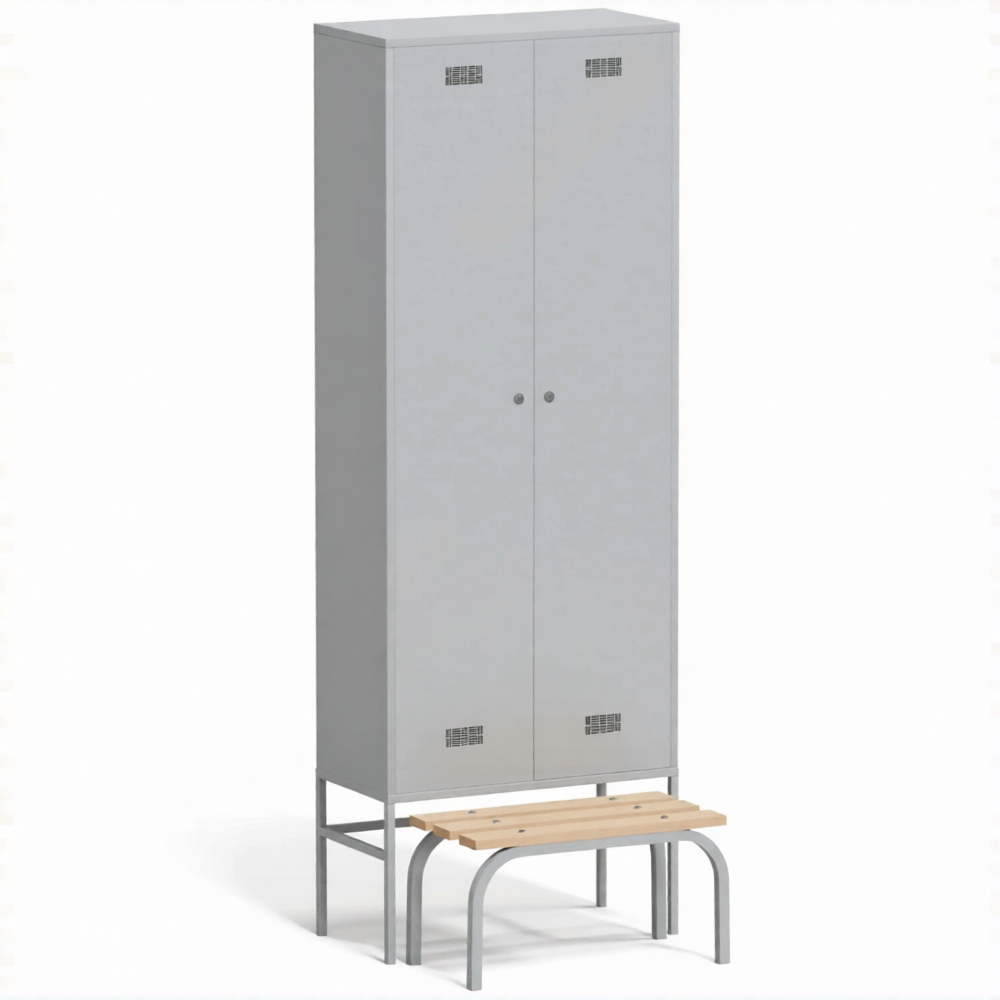 Шкаф для одежды металлический ШРВ-П-800-2 со скамьей