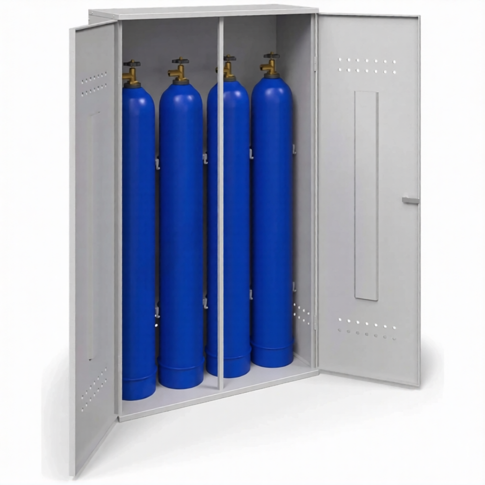 - Обеспечение базового уровня пожарной безопасности — металлический корпус, даже толщиной 0,8 мм, создает физический барьер между баллонами и возможными источниками огня или искр (например, от болгарки). Наличие вентиляционных отверстий обеспечивает необходимый воздухообмен для предотвращения скопления газа, что является главным приоритетом согласно простейшим правилам безопасной эксплуатации.
