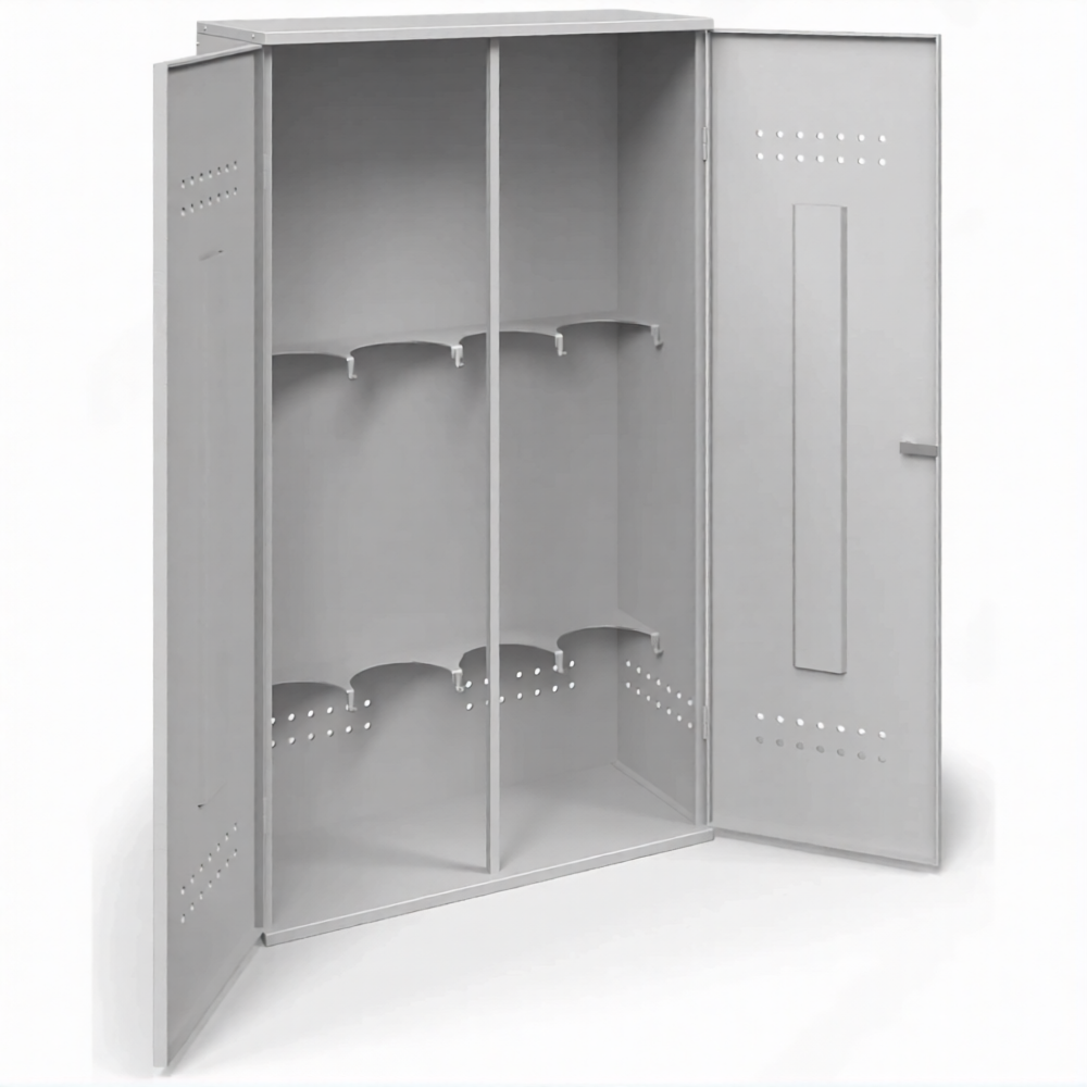 - Защита от непогоды и кражи по доступной цене — собранный шкаф с запирающейся на навесной замок дверью защищает баллоны от дождя, снега, прямых солнечных лучей, а также от случайного доступа детей или посторонних лиц. Это простейшая, но эффективная мера для сохранности имущества на частной территории.